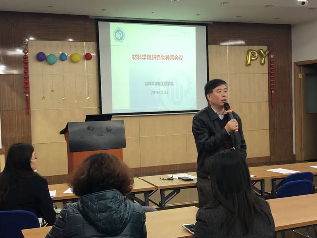 3月23日中午,澳门古天乐太阳集团官网在学院教工活动中心召开全体研究生导师会议,专题学习教育部教研(2018)1号文《教育部关于全面落实研究生导师立德树人职责的意见》,部署澳门古天乐太阳集团官网本学期研究生、科研与学科建设、人才、教学等工作重点。学院党委书记唐颂超、院长李春忠、分管研究生工作副院长袁媛、分管科研工作副院长林绍梁、分管本科生教学副院长李欣欣、院党委副书记戴诚安、院办主任顾婷和研究生导师、研究生办公室管理人员近90人出席会议。会议由院长李春忠主持。