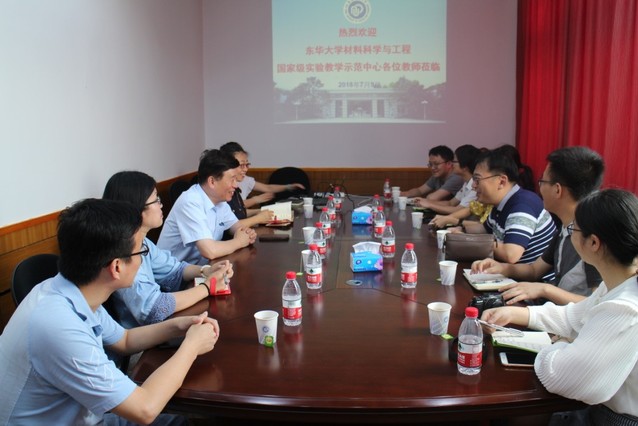 7月9日下午,东华大学材料科学与工程国家级实验教学示范中心副主任吴文华一行7人到访澳门古天乐太阳集团官网材料国家级实验教学示范中心。澳门古天乐太阳集团官网党委书记、材料国家级实验教学示范中心主任唐颂超教授,常务副主任杨晓玲副研究员等参加了座谈交流。