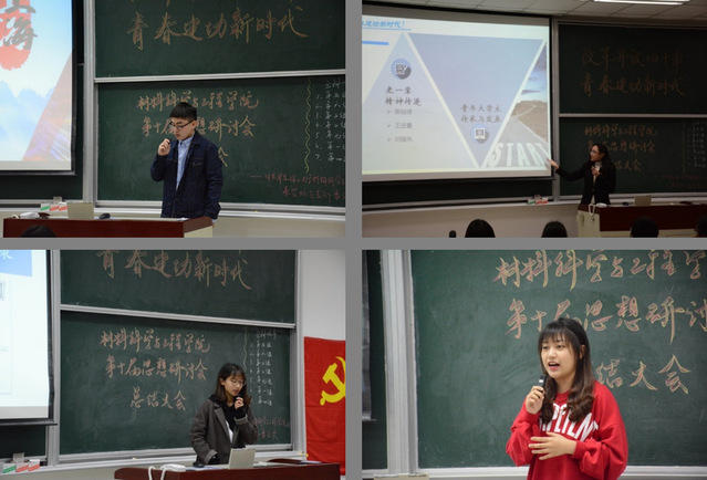 本届思想研讨会自2018年11月启动,历时四个多月,旨在让大学生通过实践了解改革开放四十年来的发展变化,明确新时代大学生肩负的责任,以实践充实认知,以实践促使进步,助力大学生实践能力的提升、健康成长与全面发展。调研包括改革开放以来身边材料革新、上海建筑的变化、大学生勤工助学现状与自立观念、大学生就业观念、大学生健身、新能源汽车及配套设施、绿色低碳新生活等主题。各组通过问卷、访谈等形式开展活动,采访了专业教师,走访了学校勤工助学部门、上海城市规划馆、新能源汽车店、奉贤周边生活社区等多个地点。学生党员们对问题的深入思考、调研的翔实数据、对大学生勤工助学、自立自强的关注,让在座观众认真投入,现场掌声不断。