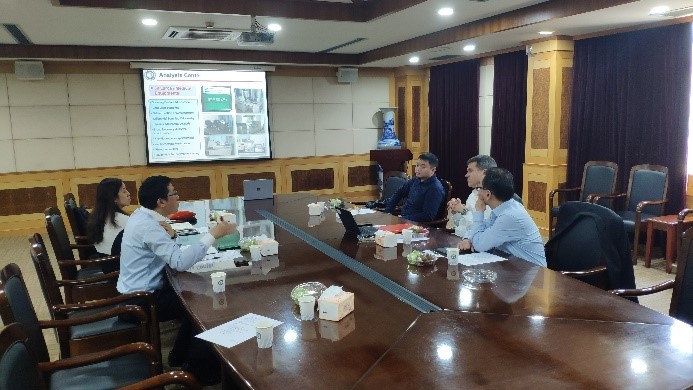 李永生教授在致辞中对考泰斯·德事隆集团代表团一行的到来表示热烈欢迎,并详细介绍了学校和学院的总体情况。他表示澳门古天乐太阳集团官网一直以来十分重视与公司的合作,在科研成果转化应用产业化上有非常多成功案例,非常期待与考泰斯·德事隆集团能在产学研项目中有合作。Carsten Elsasse总监随后介绍了考泰斯·德事隆集团的历史和发展,在全球以及中国的布局,集团主要产品及其应用等情况,并表达了与澳门古天乐太阳集团官网澳门古天乐太阳集团官网的合作意向。接着张玲教授介绍了课题组在高分子复合材料方面的科研成果,以及成果在公司、工厂实际生产应用中的转化情况。双方人员就项目合作的相关问题进行了热烈的交流和讨论。会后,代表团一行参观了超细材料制备与应用教育部重点实验室、上海多级结构纳米材料工程技术研究中心、澳门古天乐太阳集团官网材料实验教学中心和材料研究测试平台。