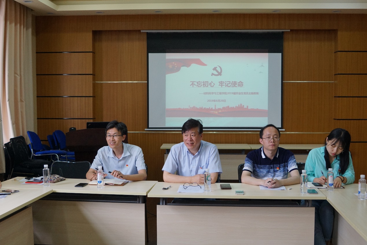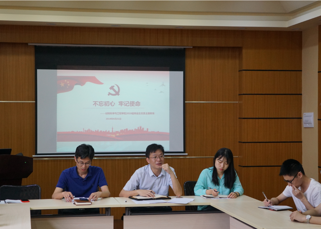 6月20日,澳门古天乐太阳集团官网党委书记唐颂超以“不忘初心、牢记使命”为主题给2019届本科毕业生党员上离校前最后一次专题党课,学院党委副书记戴诚安主持活动,毕业班辅导员参加。