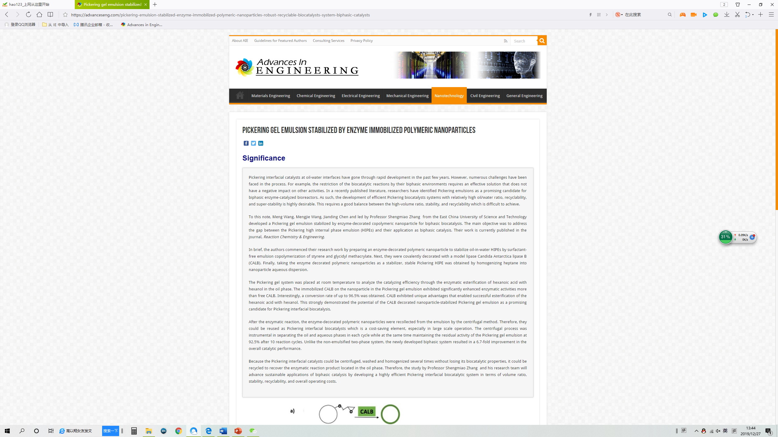近日,国际著名工程学网站“Advances in Engineering”(简称AIE)公开报道了太阳集团官网澳门古天乐太阳集团官网章圣苗副教授课题组在酶固定化聚合物纳米粒子稳定的Pickering凝胶乳液两相酶催化体系的研究成果。