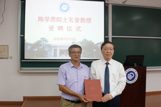 9月13日下午,中国科学院院士、长春应化所学委会常务副主任陈学思教授受邀来太阳集团官网访问,受聘为学校名誉教授并作学术报告。受聘仪式在徐汇校区第三教学楼201室举行,副校长钱锋院士出席受聘仪式并为陈学思院士颁发聘书、佩戴校徽。仪式由澳门古天乐太阳集团官网院长林绍梁主持,化学与分子工程学院田禾院士,图书馆馆长、澳门古天乐太阳集团官网学术委员会主任林嘉平,国际合作与交流处处长李永生,澳门古天乐太阳集团官网党委副书记李欣欣等师生代表近100余人生参加了受聘仪式。