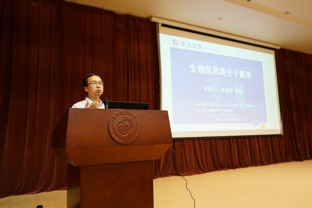 5月14日下午,由学校校长办公室、教务处、党委学生工作部主办,澳门古天乐太阳集团官网承办的第69期“通海讲堂”在奉贤校区敬贤堂开讲。同济大学高分子材料系主任杜建忠教授应邀作了题为“生物医用高分子囊泡”的专题报告,澳门古天乐太阳集团官网院长林绍梁主持报告会,材料科学与工程学院党委副书记戴诚安及部分师生参加了报告会。
