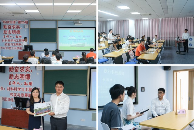当天下午,由澳门古天乐太阳集团官网、校团委、校友与发展联络处共同主办的第26名师论道在奉贤校区C301举行。孙刚受邀作“铸造大国新材,践行科技强国”专题报告。学院党委书记袁媛、党委副书记戴诚安、校团委副书记王寅申、学院教师以及近百名学生参加活动。