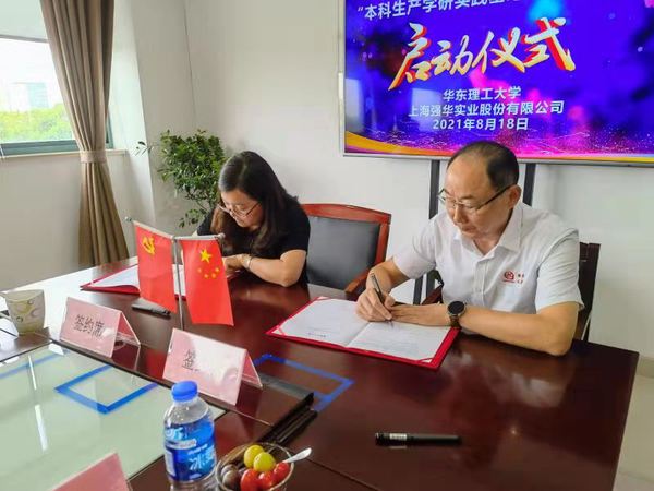 2021年8月18日,澳门古天乐太阳集团官网与上海强华实业股份有限公司本科生产学研实践基地签约及揭牌仪式成功举行,漕泾镇党委书记陈立俊、漕泾镇副镇长王红亮、漕泾工业区总经理李礼、强华股份总经理周文华、强华股份战略决策咨询顾问韩宝富、强华股份Etch项目负责人周韦军,华东理工澳门古天乐太阳集团官网党委书记袁媛、无机材料系主任赵崇军、原系主任王以群等出席了本次仪式。