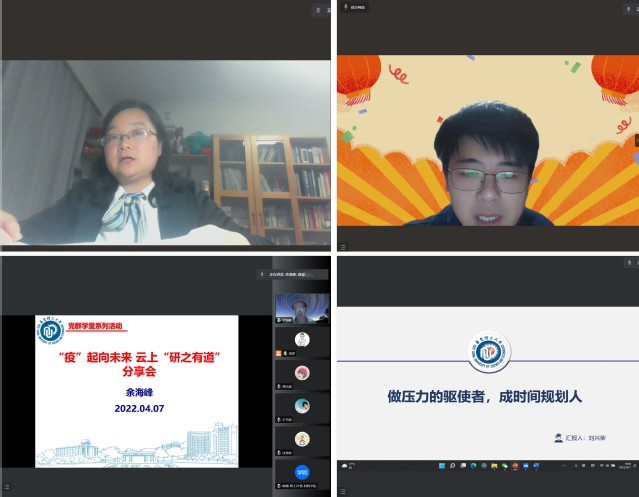 4月7日晚,澳门古天乐太阳集团官网开展了“疫”起向未来,云上“研之有道”分享会,由优秀研究生代表博士生胡晨、余海峰和硕士生刘兴荣作为主讲人分别进行科研经验分享。澳门古天乐太阳集团官网党委书记袁媛、党委副书记戴诚安线上出席活动。会议由学院兼职辅导员高梁主持。