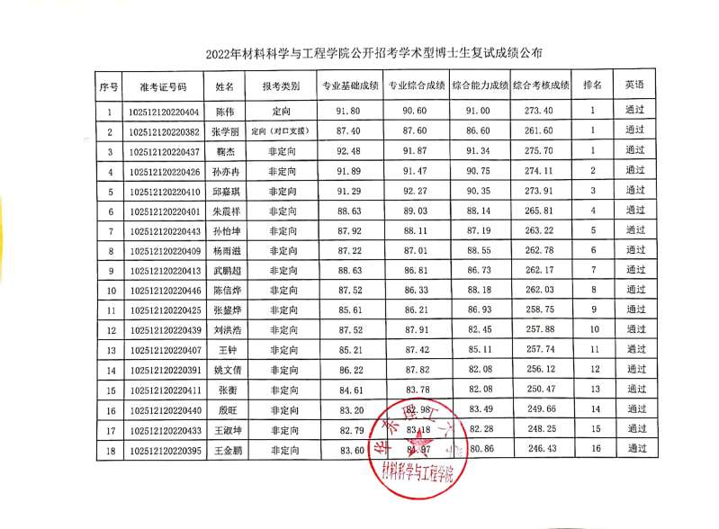 2022公开招考学术型博士生成绩公布-澳门古天乐太阳集团官网