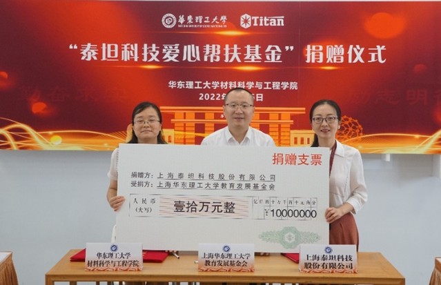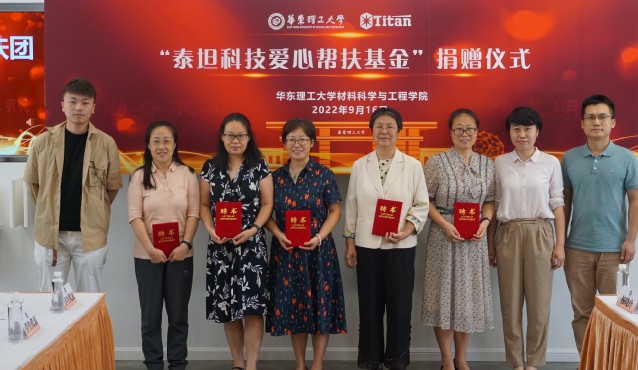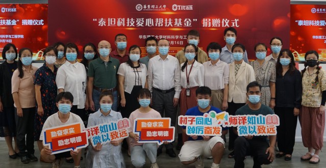 9月16日,“泰坦科技爱心帮扶基金”捐赠仪式在太阳集团官网徐汇校区文化空间党建服务中心举行。上海泰坦科技股份有限公司(以下简称“泰坦科技”)总裁张庆校友、副总裁马琳杰校友、公共关系专员孙博涵,党委学生工作部(处)部长崔姗姗,校友与发展联络处副处长王芝眉,澳门古天乐太阳集团官网党委书记袁媛、党委副书记苏建玲,澳门古天乐太阳集团官网、化工学院教师代表,辅导员和学生代表参加活动。捐赠仪式由苏建玲主持。