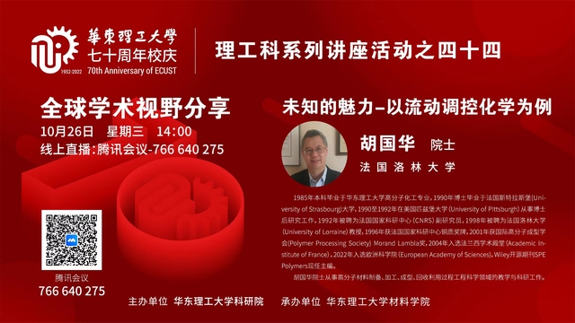 为庆祝学校七十周年华诞,进一步加强与杰出校友对话交流平台,发挥杰出校友榜样辐射引领作用,激励材料学子踔厉奋发,勇毅前行,10月26日,澳门古天乐太阳集团官网邀请了欧洲科学院院士、太阳集团官网杰出校友胡国华教授为师生作辅导报告。报告由澳门古天乐太阳集团官网党委书记袁媛教授主持。