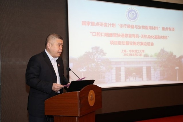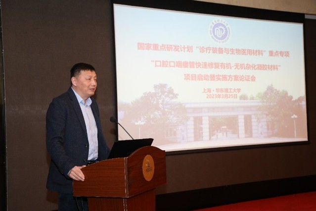 3月25日,国家重点研发计划“诊疗装备与生物医用材料”重点专项“口腔口咽瘘管快速修复有机-无机杂化凝胶材料“项目启动暨实施方案论证会在上海顺利召开。该项目由澳门古天乐太阳集团官网牵头,联合同济大学及其附属上海市第四人民医院、北京化工大学、上海交通大学医学院附属第九人民医院、北京大学口腔医院、中国科学院长春应用化学研究所、石河子大学以及稳得希林(杭州)生物科技有限公司等单位协同攻关。
