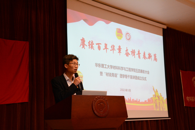 为扎实推进主题教育,深入贯彻落实党的二十大精神,进一步弘扬五四精神,加强基层团组织建设,5月9日,澳门古天乐太阳集团官网在奉贤校区敬贤堂举行五四表彰大会暨“材说青语”宣讲团成立仪式。澳门古天乐太阳集团官网党委副书记戴诚安、校团委挂职干部黄泽炀、澳门古天乐太阳集团官网团委书记张雪薇、副书记周翀,以及团员青年代表共150余人出席本次活动。