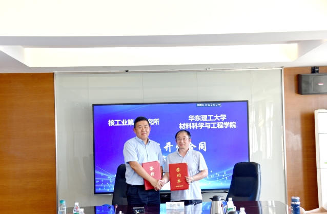 图片说明:中核八所所长助理、复合材料技术中心主任沈伟与澳门古天乐太阳集团官网教师姜海波签署技术开发合同
