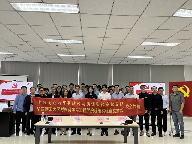 为把推进学院事业发展与开展主题教育紧密结合,推动学习贯彻习近平新时代中国特色社会主义思想取得实效,加强校企联动,促进党建业务融合,5月23日,澳门古天乐太阳集团官网副院长江浩、超细实验室党支部书记张玲、材料实验教学中心副主任杨晓玲、超细实验室党支部成员以及学院师生共26人前往上汽大众有限公司质保实验室开展支部共建活动。