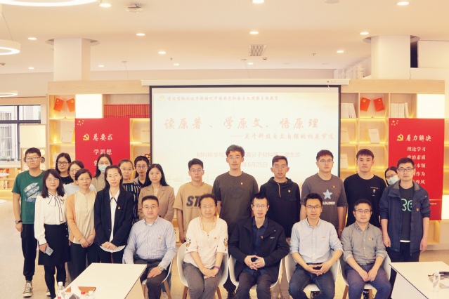 为扎实开展学习贯彻习近平新时代中国特色社会主义思想主题教育,牢牢把握“学思想、强党性、重实践、建新功”的总要求,聚焦中心工作,推进党建业务融合,5月25日,澳门古天乐太阳集团官网高分子材料第二党支部在徐汇校区图书馆明德书房组织“聚焦基因驱动高性能树脂创制 传承科技自立自强使命担当”主题党日观摩活动。高分子材料第二党支部成员、材料硕士第四党支部、材料硕士第六党支部学生党员代表参加了活动。化学院、化工学院、外语学院等师生党支部书记代表观摩了此次主题党日。活动由高分子材料第二党支部支委高梁主持。