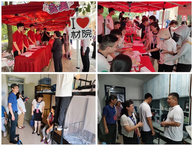 9月2日上午,学院党委书记袁媛,党委副书记兼纪委书记苏建玲,党委副书记戴诚安,副院长胡彦杰、顾金楼、江浩等一行人来到迎新现场,与工作人员交流,了解新生报到情况,随后走访2023级新生宿舍,与新生和家长进行面对面交流。