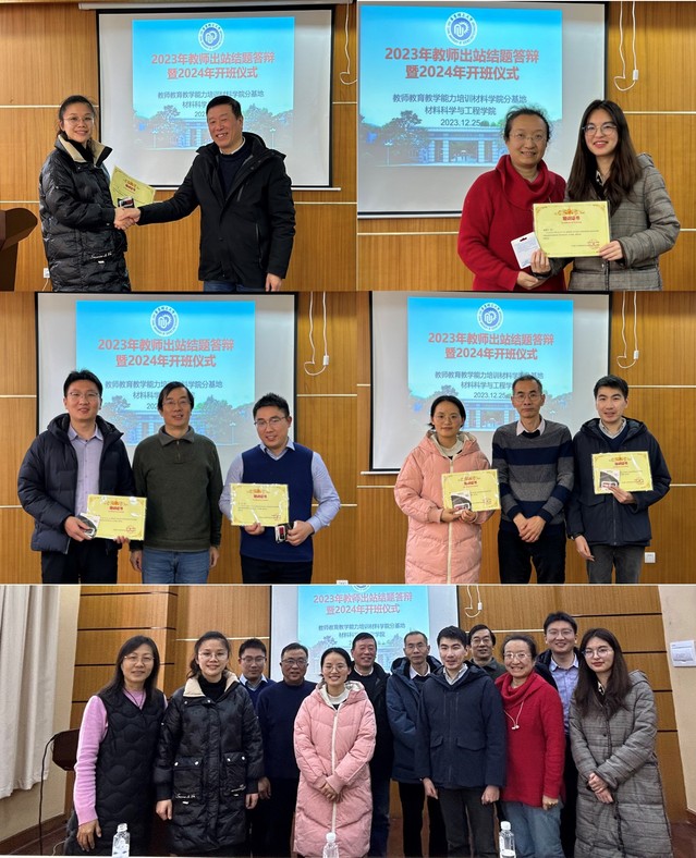 2023年12月25日,澳门古天乐太阳集团官网在实验一楼第一会议室举办青年教师教育教学培训基地出站答辩汇报暨2024级入站开班仪式。国家教学名师唐颂超、教学副院长顾金楼、高分子专业责任教授李欣欣、高分子材料系系主任周权、无机材料系副系主任孙金煜五位导师作为答辩评委,十余名即将出站和即将进站的青年教师出席了本次活动,本次活动由孙金煜主持。