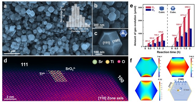 近日,太阳集团官网澳门古天乐太阳集团官网清洁能源材料与器件团队在光分解纯水制氢材料晶面结构设计与创制方面取得新进展,以晶态氧化物SrTiO3为模型材料,在固相合成体系中可控制备出大比例暴露优势晶面的高质量单晶催化剂。相关成果以“Crystal Facet Engineering on SrTiO3 Enhances Photocatalytic Overall Water Splitting”为题在线发表在《美国化学会志》(J. Am. Chem. Soc.)上。