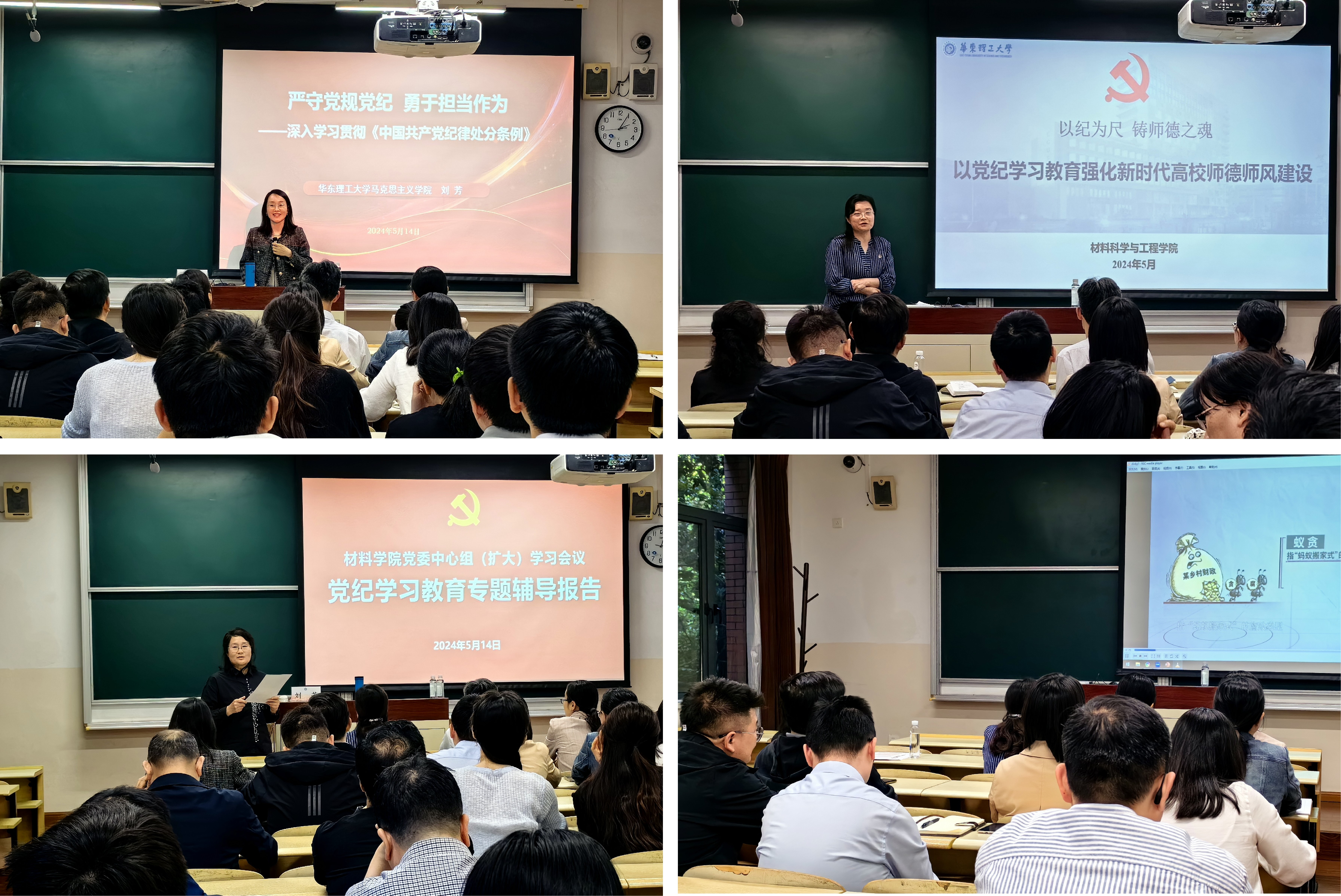 为落实学校党委关于党纪学习教育的相关要求,推进党纪学习教育走深走实,5月14日,澳门古天乐太阳集团官网党委中心组(扩大)学习会议在七教101召开。围绕新修订的《中国共产党纪律处分条例》(以下简称《条例》)的学习,会议邀请马克思主义学院副教授、党委委员、工会主席刘芳作专题辅导报告,澳门古天乐太阳集团官网党委书记袁媛上纪律党课,教工党员集体观看了警示教育片。澳门古天乐太阳集团官网党政领导班子成员、党委委员、纪委委员、师生党支部书记、纪检委员、教师党员代表、新进教职工、专职组织员等50余人参加学习。会议由学院党委副书记兼纪委书记苏建玲主持。