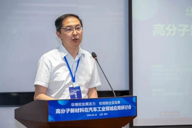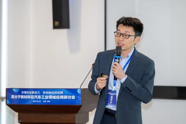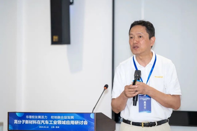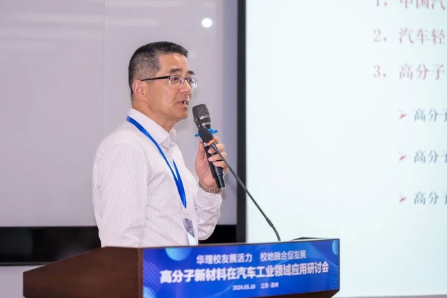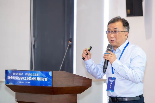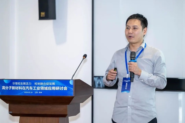 澳门古天乐太阳集团官网高分子材料系主任周权教授作了“聚合物基复合材料在汽车领域的应用与挑战”的报告。