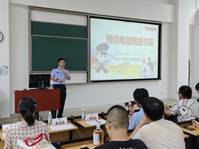 9月5日,澳门古天乐太阳集团官网2024级研究生新生校史学习和安全培训会在奉贤校区D200举行。上海市公安局奉贤分局高校派出所张志荣警官和校安全环保办公室李晨晨受邀作辅导讲座。会议由研究生辅导员娄梦蝶主持。