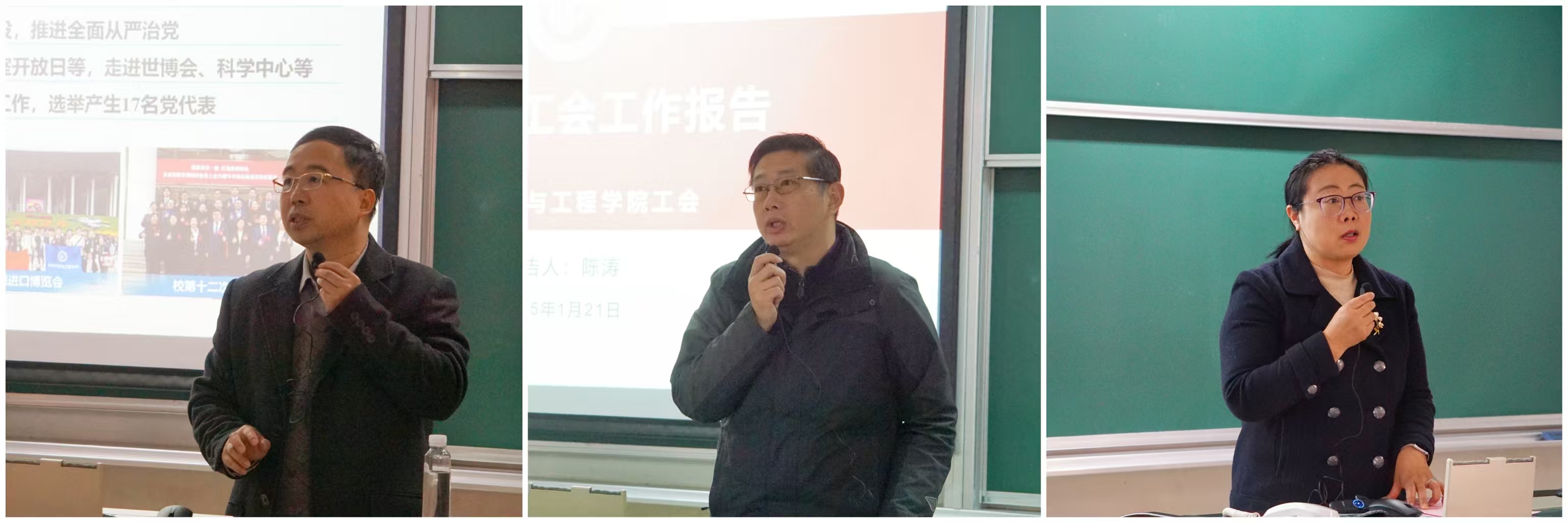 材料学院工会主席陈涛作2024年学院工会工作报告,他从民主管理、组织建设、宣传教育、文体活动、维权保障、妇女工作、财务管理等方面总结汇报了学院工会的工作开展情况和取得的成绩,并提出了2025年工作计划。他指出,学院工会将继续坚持“党工共建”特色,组织主题鲜明的实地研学,寓思想教育于工会活动,上好教职工大思政课,提升凝聚力。