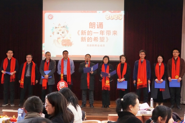 联欢会在党政联席会成员一同朗诵的《新的一年带来新的希望》中落下帷幕,杜建忠代表党政联席会成员,向一年来辛苦付出的全体师生表示衷心感谢,并送上诚挚的新春祝福。