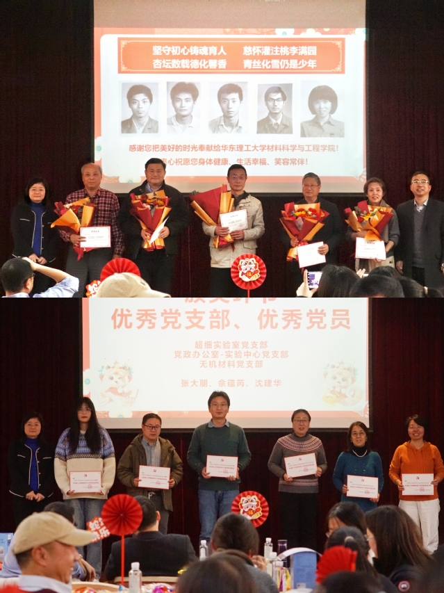 联欢会上,学院为2024年退休的教职工举办了荣退仪式,向他们多年来的辛勤付出致以崇高敬意。袁媛和杜建忠为荣退教职工颁发纪念证书并赠送鲜花,大家饱含深情地分享了自己的心路历程,表达了对组织培养的感恩之心以及美好祝愿。联欢会上还表彰了学院优秀党支部和优秀党员。为本命年的教职工送上了代表祝福的红袜,寓意本命之年,红运连连。