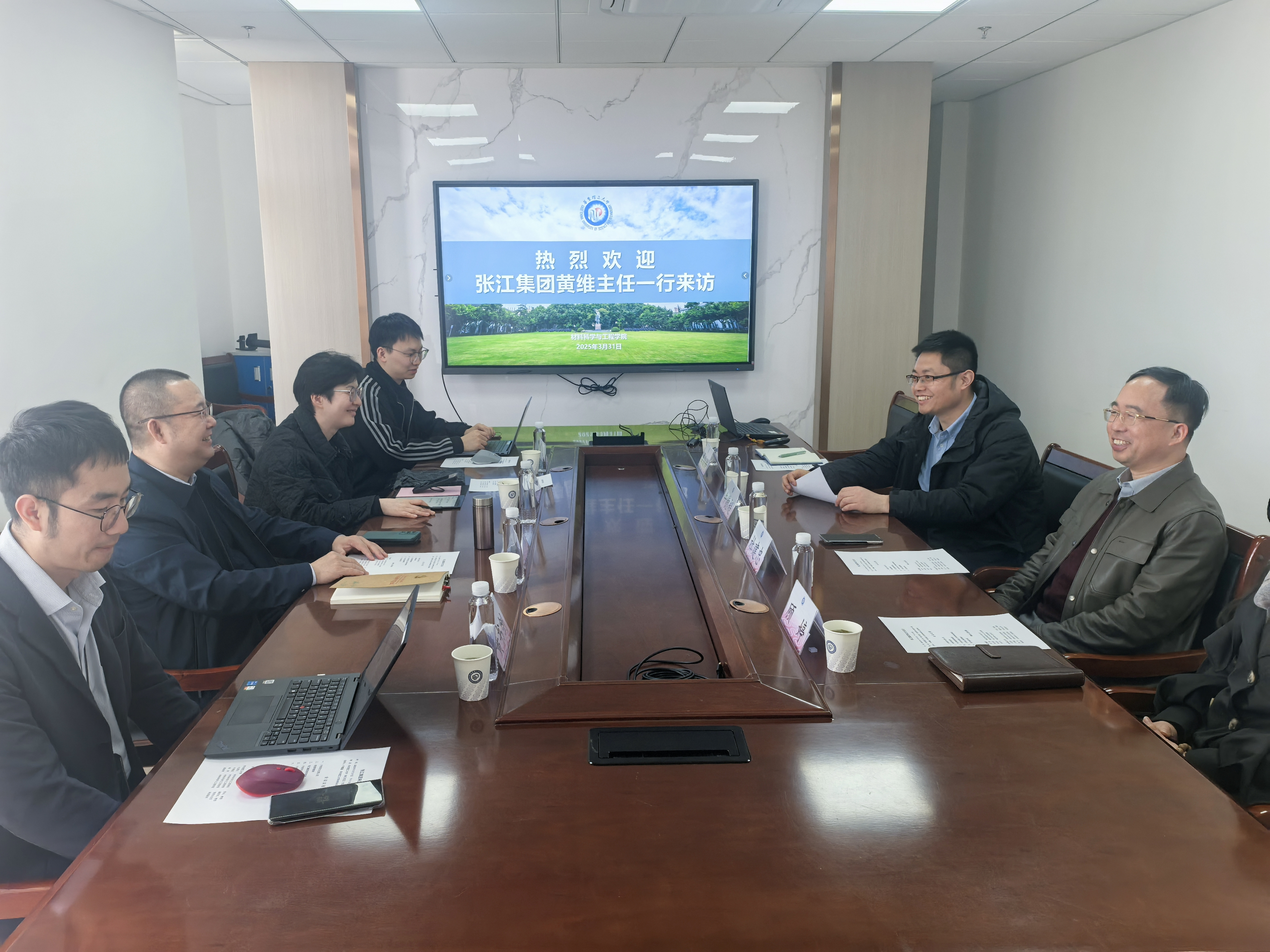 3月31日,张江集团党委办公室主任黄维、集团招商服务中心主任助理陈冰蕾、张江科投总经理助理黄书剑、集团党委办公室蔡丰飞一行来访,太阳集团官网澳门古天乐太阳集团官网院长杜建忠、副院长牛德超、党政办公室主任顾婷等参加座谈交流会,双方就科技创新成果转化、产业孵化、人才支持等领域展开了深入的交流。会议由牛德超主持。