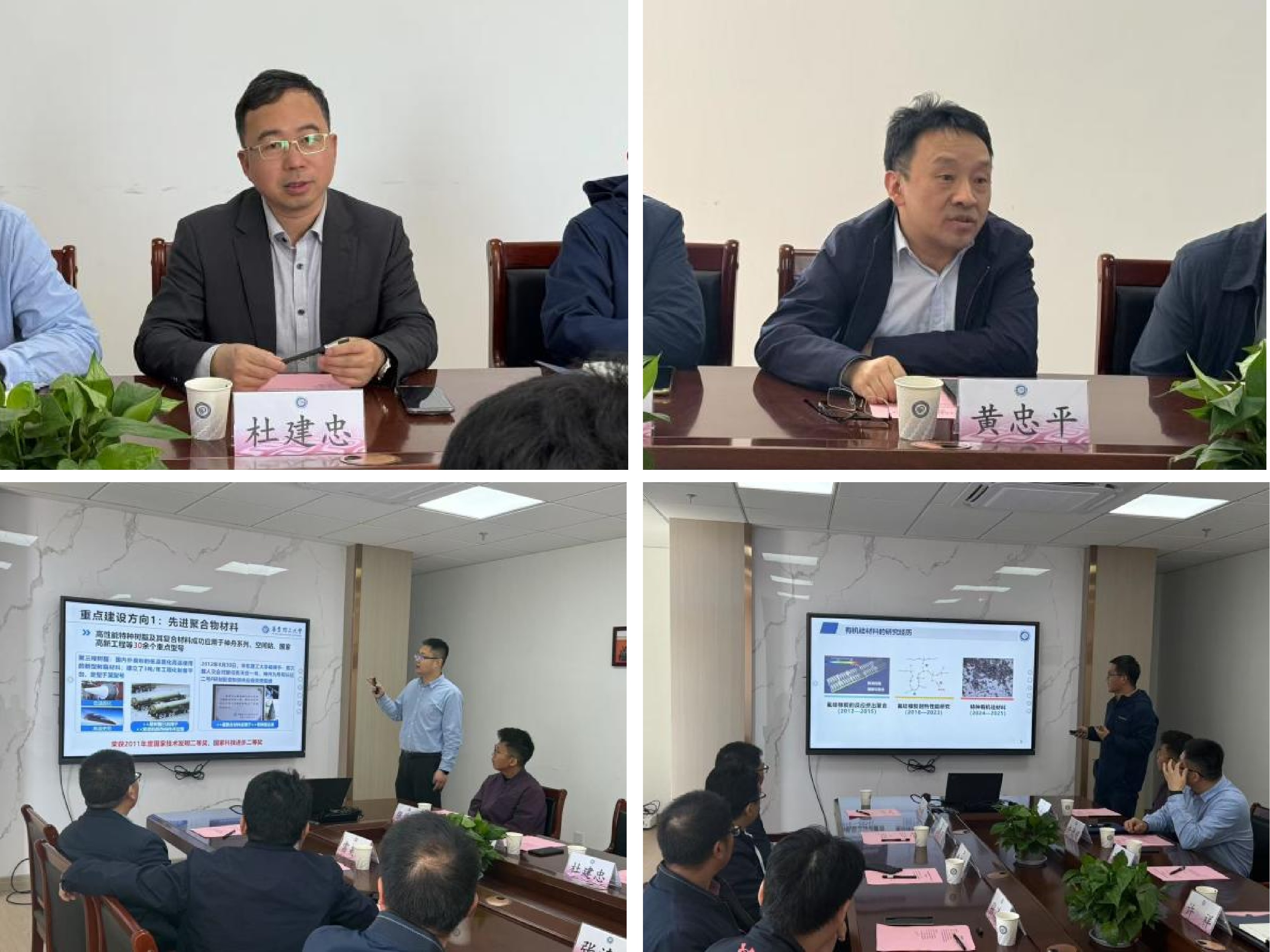 杜建忠对黄忠平一行的到访表示热烈欢迎,并介绍了澳门古天乐太阳集团官网在有机硅领域的研究基础,重点交流了在耐高温树脂方面的研究成果。他表示,学院高度重视此次项目交流,将全力推动资源高效整合,支持关键技术联合攻关的开展。