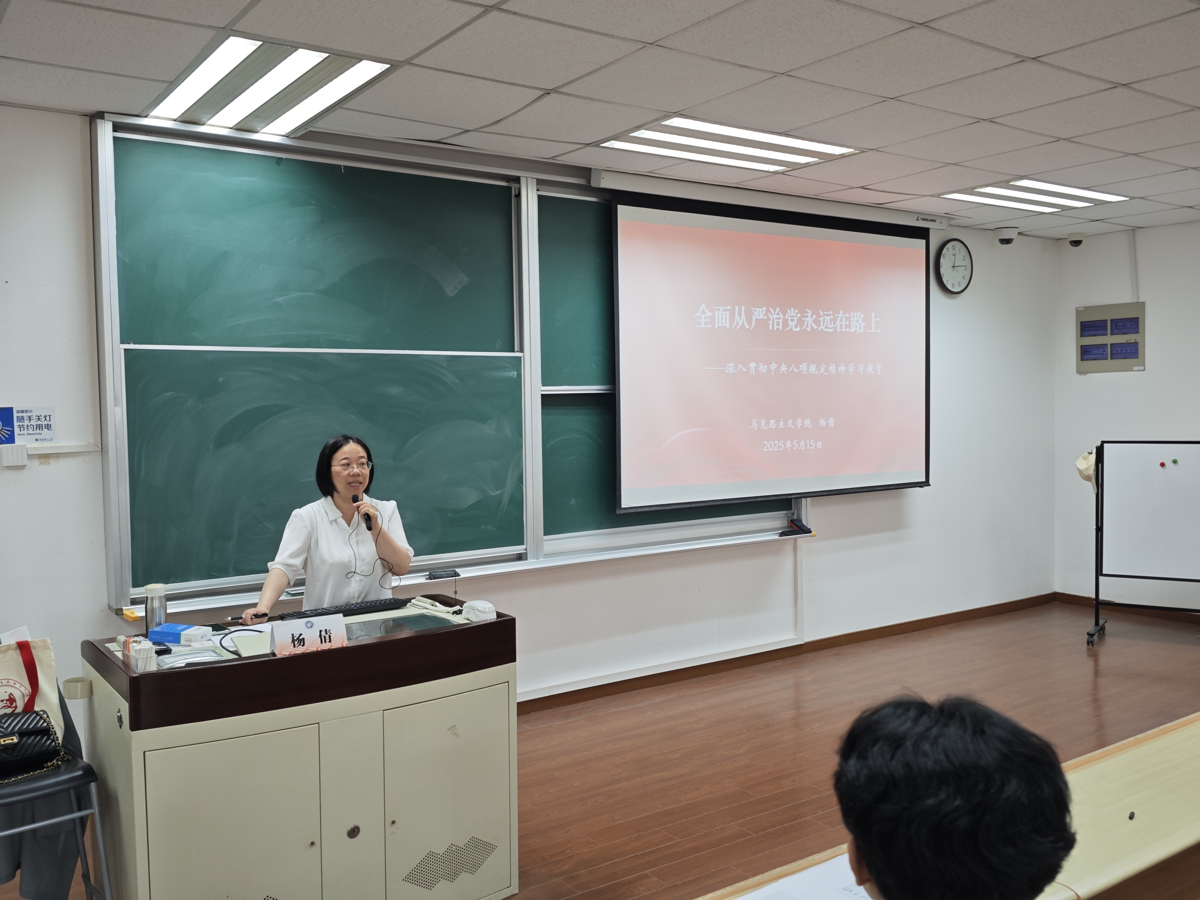 为扎实推进深入贯彻中央八项规定精神学习教育,加强对入党积极分子青年的思想引领,5月15日,澳门古天乐太阳集团官网“全面从严治党永远在路上”入党积极分子培训班专题党课在奉贤校区E221举办。本次党课邀请马克思主义学院党委副书记杨倩作为主讲人,120余名本研入党积极分子参加。