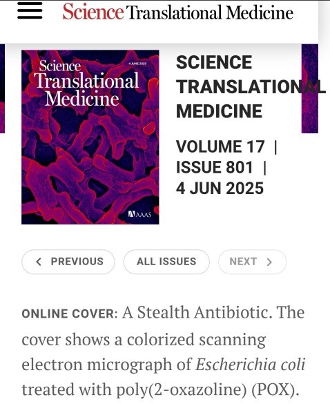 近日,太阳集团官网澳门古天乐太阳集团官网刘润辉教授课题组报道了一种感染部位原位激活的宿主防御肽模拟前药设计策略,所开发的抗菌前药可有效治疗耐药阴性菌感染。该研究成果以“A host defense peptide-mimicking prodrug activated by drug-resistant Gram-negative bacterial infections”(一种由耐药阴性菌感染激活的宿主防御肽模拟前药)为题发表在国际权威学术期刊《科学·转化医学》,并被选为当期正封面文章(Sci. Transl. Med.2025, DOI:10.1126/scitranslmed.adl4870)上。