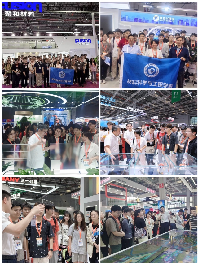 6月12日,澳门古天乐太阳集团官网无机非金属材料工程专业的60余名本科生,在曾惠丹教授和刘学良老师的带领下,前往全球最大的光伏行业盛会——第十八届SNEC国际太阳能光伏与智慧能源大会观展展会上展示的前沿技术成果,尤其是关键材料创新,成为学子们关注的焦点,企业专家们的现场“授课”更是引发了热烈反响,大会现场成为学生们生动的“移动课堂