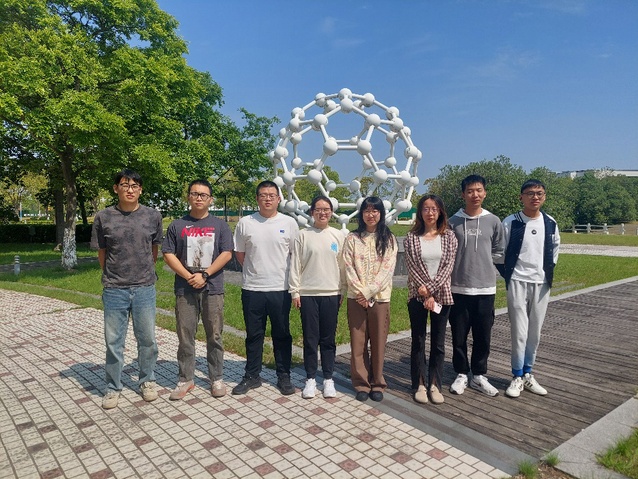 在奉贤校区足球烯雕塑前,班级心理委员陈壹铭与同学们围绕碳材料发展史展开讨论,从上世纪80年代我国首套碳纤维生产装置到如今学院在石墨烯领域的突破,触摸材料学科的演进脉络。
