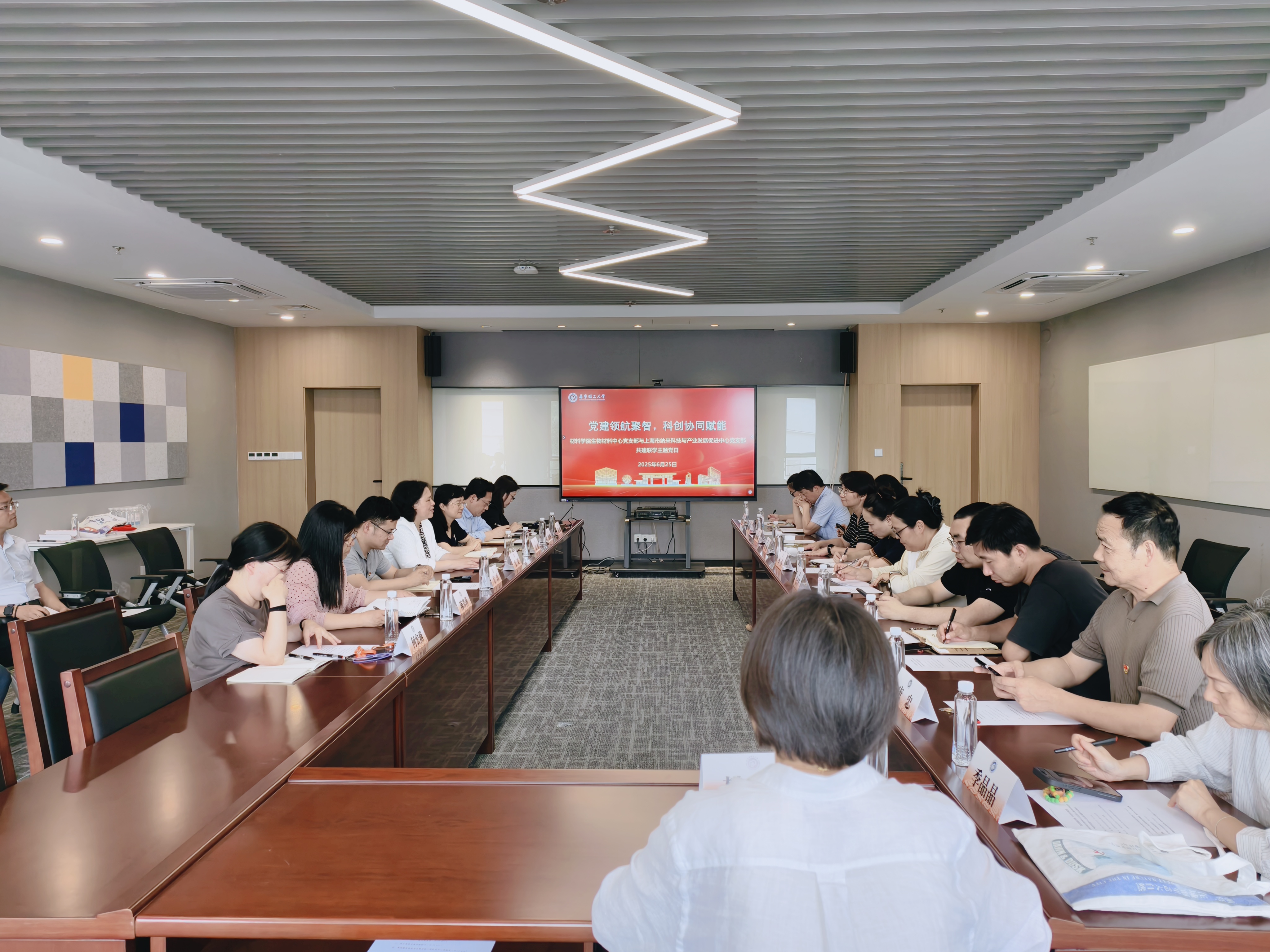 为深入学习领会习近平总书记考察上海时的重要讲话精神,推动深入贯彻中央八项规定精神学习教育走深走实,6月25日,澳门古天乐太阳集团官网生物材料中心党支部与上海市纳米科技与产业发展促进中心党支部在先进材料大楼524会议室开展“党建领航聚智,科创协同赋能”共建联学主题党日观摩活动。后勤保障处、药学院、卓越工程师学院等党员代表到现场观摩。活动由生物材料中心党支部书记张琰主持。