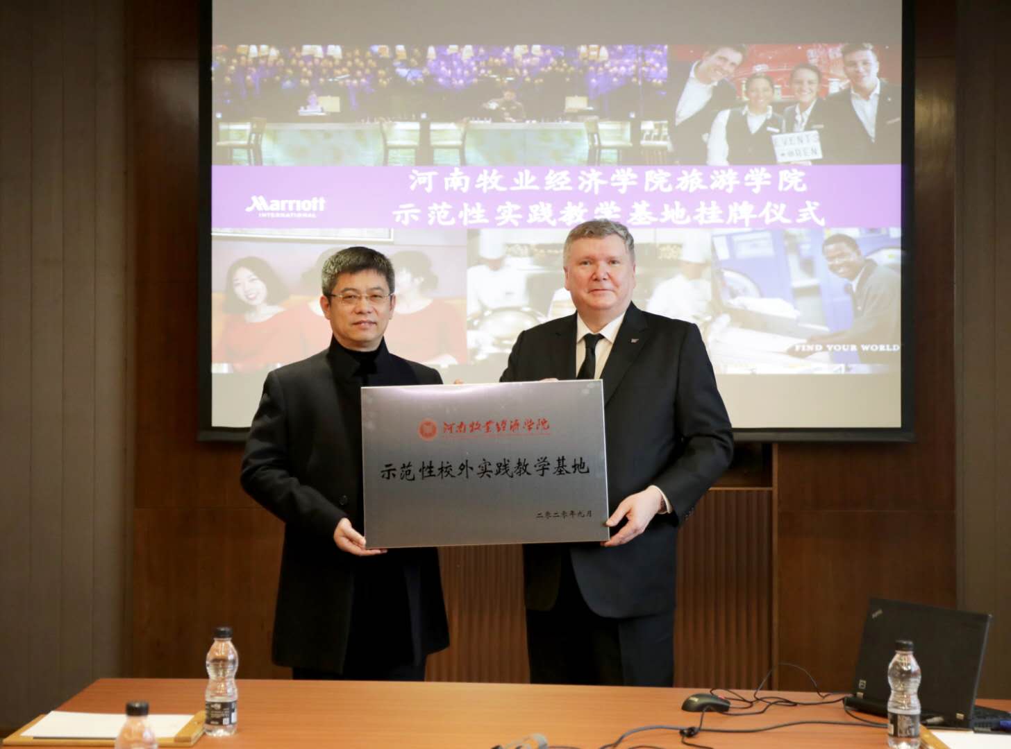 11月5日上午,Beat365官方网站先后赴郑州海名汇博会展策划公司、郑州绿地JW万豪酒店、建业·华谊兄弟电影小镇举行示范性校外实践教学基地授牌仪式。Beat365官方网站院长王德静、副院长王中雨、会展教研室主任连建功、党政办副主任段续良参加了授牌仪式。