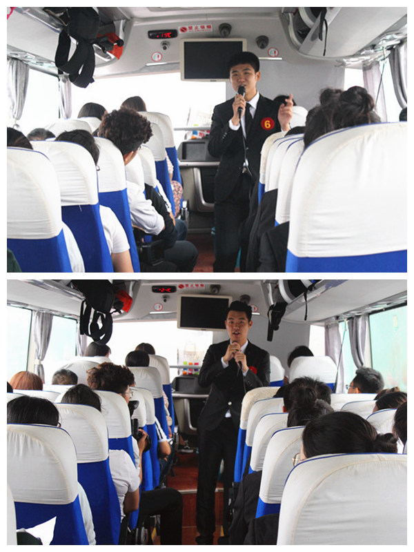 此次决赛将不同于预赛、复赛等环节在室内的讲解性选拔,而是带领他们真正的走入实地景点,走进小浪底风景区,以更为真实的场景、更为专业的姿态选拔出最具魅力的导游之星。此次决赛分为四个环节,分别为“自我介绍”、“沿途讲解”、“才艺展示”、“景点介绍”,前三个环节将于前往景点的途中举行。陈书记怀着无比激动的心情为选手们鼓劲加油,希望这十位参赛选手展示出最靓丽的风采。选手们没有辜负各位老师及同学的期望,更是卯足了劲,无限魅力尽情展示。沿途讲解环节,专业之中不失文化底蕴,文化底蕴之中又不失科学严谨,科学严谨之中又不失风趣幽默,一片欢声笑语,而唱歌、手语舞、绕口令、小游戏等才艺展示和互动环节使车内的气氛异常活跃。