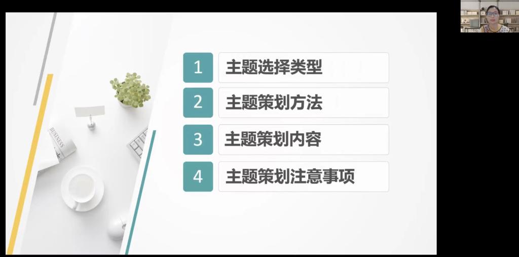 课前,杨冉冉老师充分利用学习通平台发布讨论等活动。课中,由学生讨论结果引入课程讲解,并通过腾讯会议的投票功能与学生开展互动;引入丰富的案例诠释主题策划的方法和内容,并以国潮文化节作为课程思政的导火索,激发学生浓厚的爱国情怀和文化自信,以及作为新时代大学生所应肩负的使命和担当。最后,通过完整的主题策划实践案例引导学生找出主题策划所需要注意的事项。整体备课充分,学生积极参与线上互动,教学效果较好。