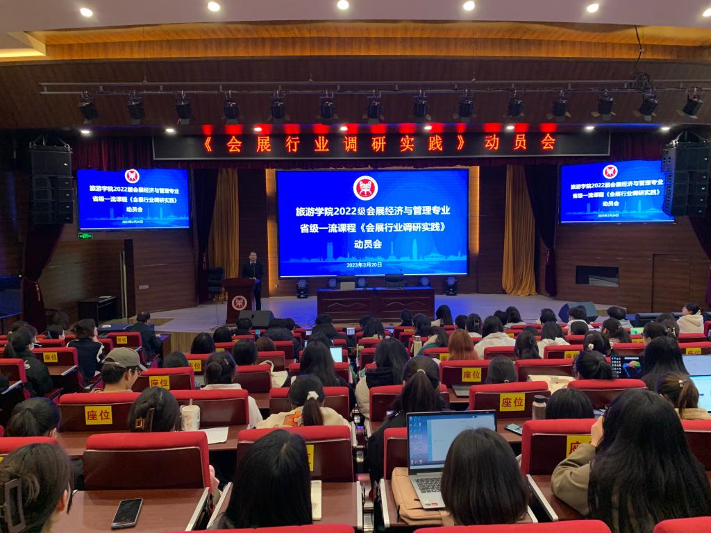 3月20日上午,Beat365官网会展经济与管理专业省级一流课程《会展行业调研实践》在一号教学楼合100报告厅召开实施动员会,教学副院长王中雨、会展教研室主任连建功、教研室部分指导教师和2022级会展01、02班学生全程参与。