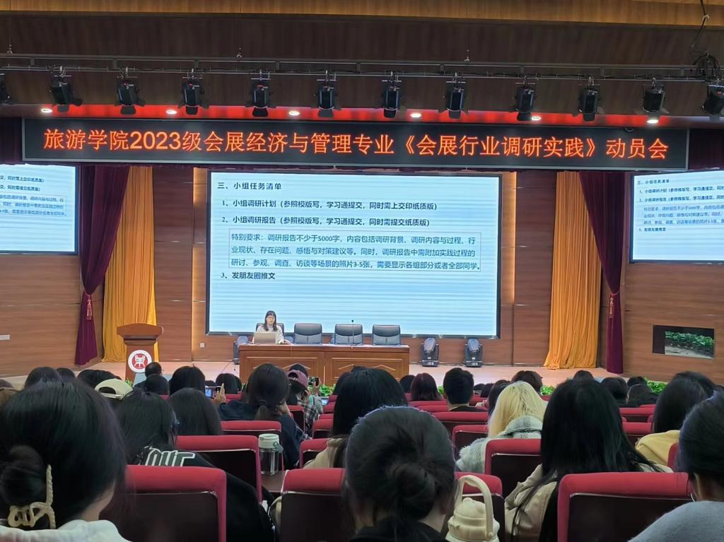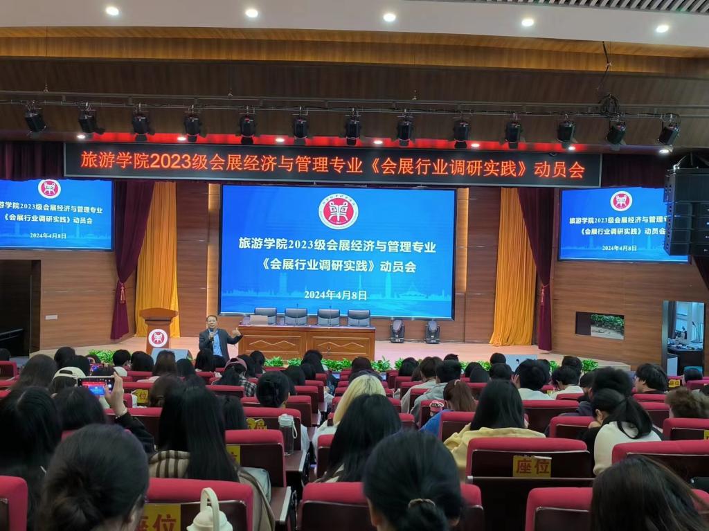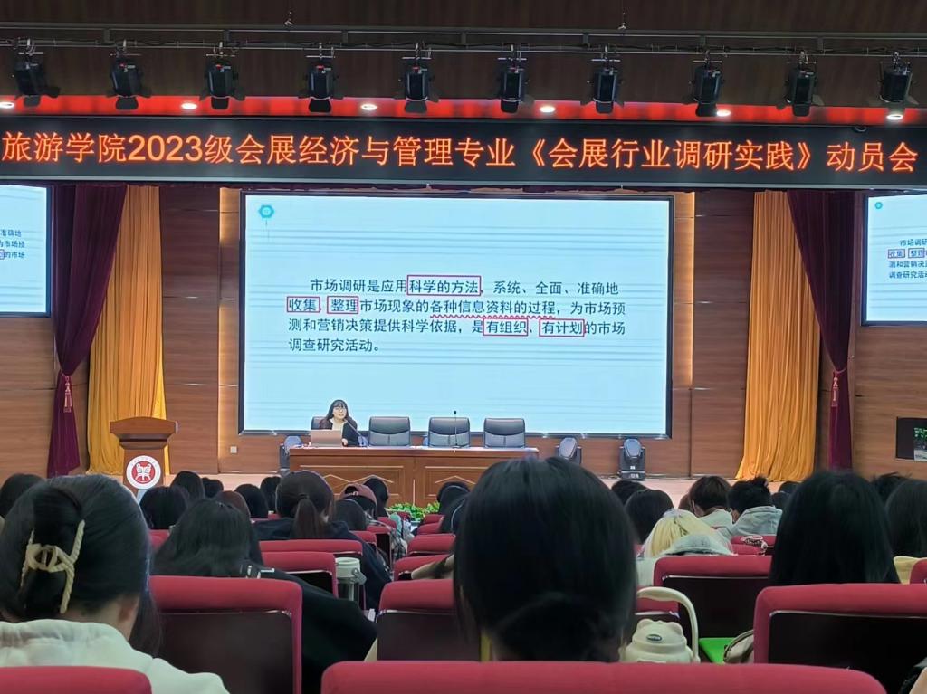 4月8日上午,Beat365官网会展经济与管理专业省级一流实践课程《会展行业调研实践》项目在一号教学楼合100报告厅顺利启动,学院教学副院长王中雨、会展经济与管理教研室全体老师及2023级会展经济与管理专业群体学生130多人参加动员会。