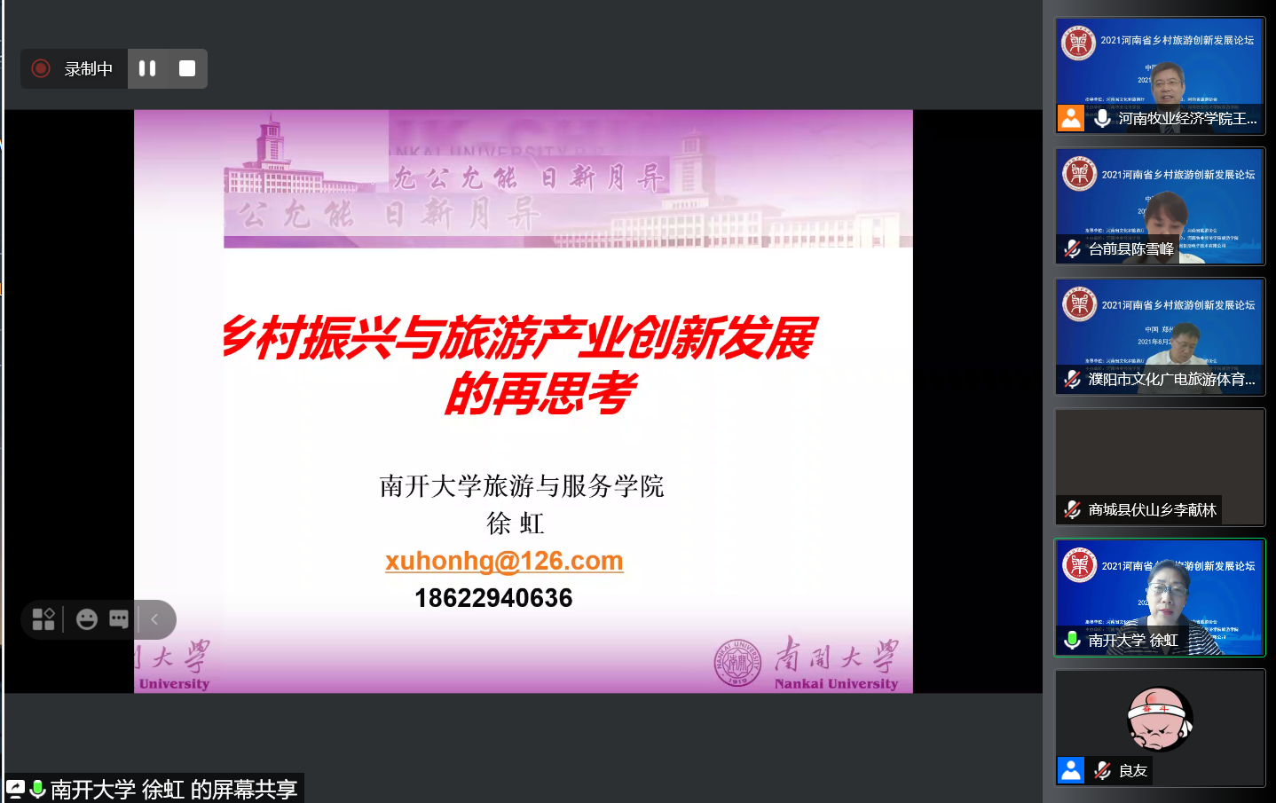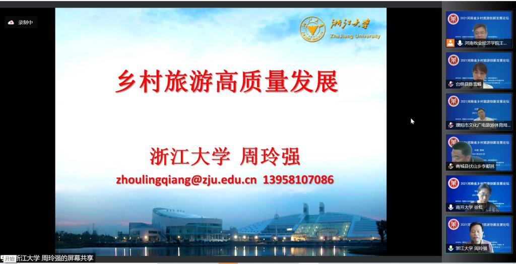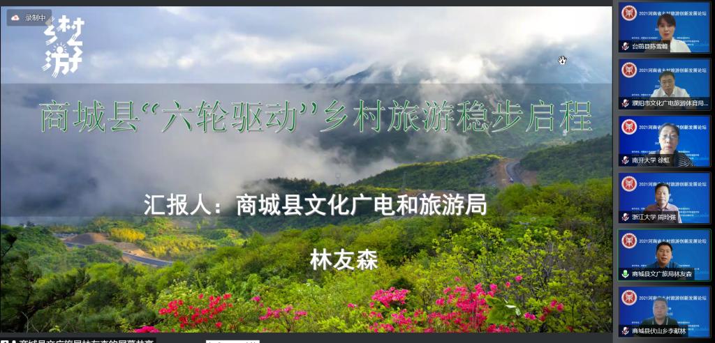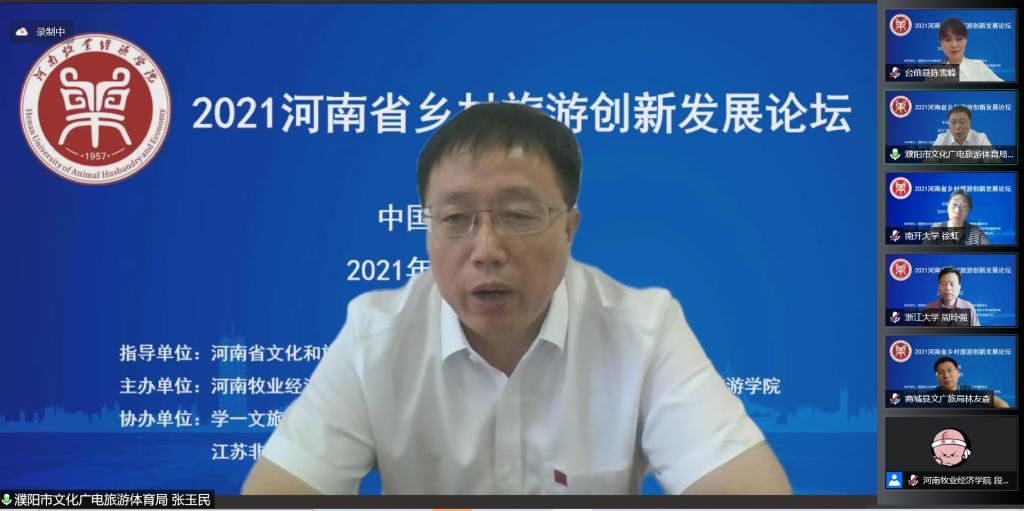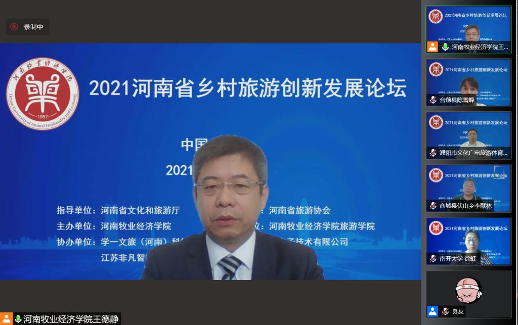 由Beat365官网主办、Beat365官方网站承办的2021河南省乡村旅游创新发展论坛于8月2日上午以腾讯会议线上直播方式举办。论坛以“乡村旅游:融合、创新与高质量发展”为主题,来自河南省文化和旅游厅、河南省旅游协会、河南省会展业商会、郑州市文化广电和旅游局、濮阳市文化广电旅游体育局、商城县文化广电和旅游局、南开大学、浙江大学、郑州大学、河南大学、河南财经政法大学、Beat365官方网站等省内外60余家单位的近300位主管部门领导、行业专家、企业高管、高校教师和乡村旅游基层管理者,围绕乡村振兴、文旅融合、乡村旅游产业高质量发展、乡村旅游品牌建设等热点问题进行了深入的理论探讨,就乡村旅游中古村落保护、美丽乡村建设中的文化建设、高端精品民宿开发等实践问题进行了经验分享。