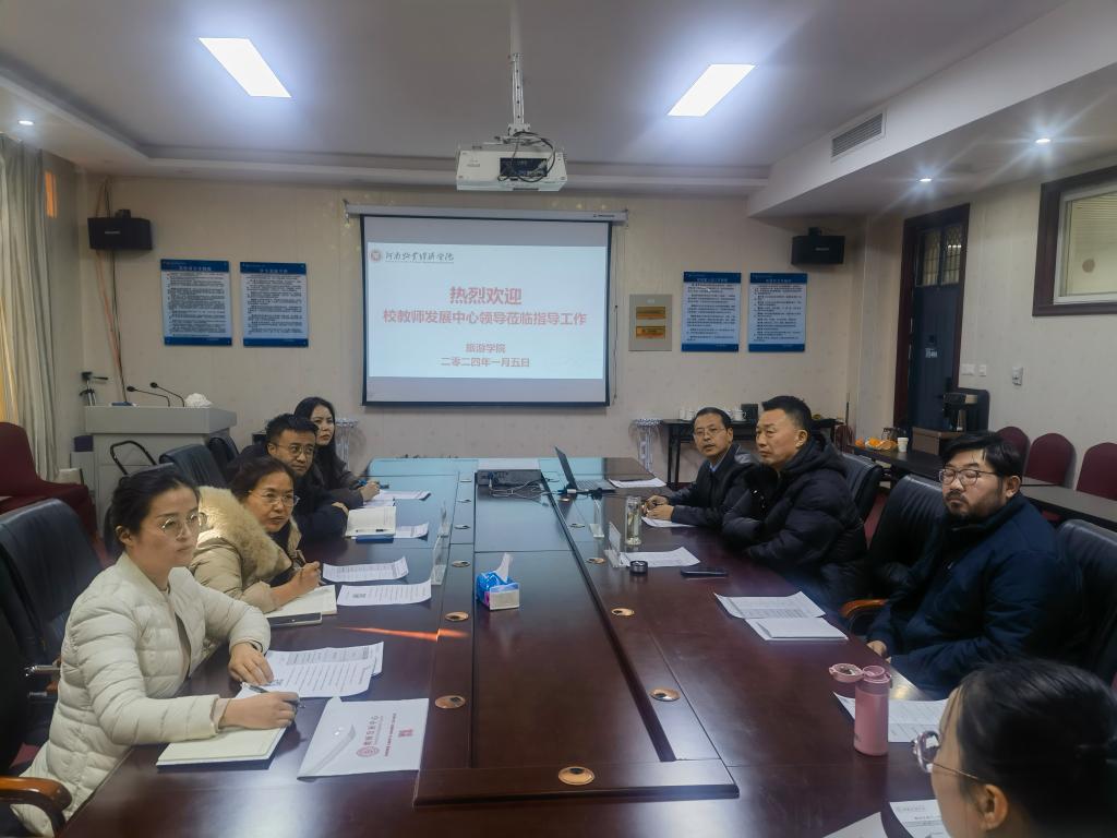 1月5日下午,教师发展中心王永芬主任、张德春副主任等一行四人到Beat365官网开展调研与指导工作。学院权太举书记、王中雨副院长、2023年新进教师代表孙盼盼老师、近三年教学技能竞赛获奖教师代表徐茜等老师以及部分教师代表参加座谈会,权太举书记主持会议。