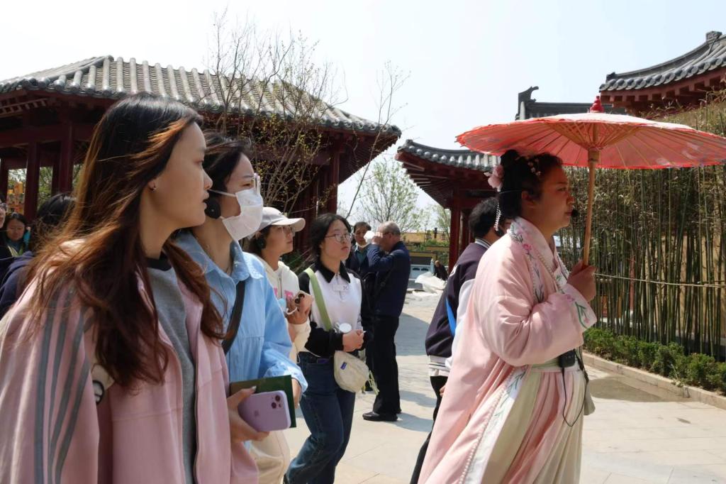 2024年4月9日,Beat365官方网站2023级旅游管理专业学生在旅游教研室老师带领下前往清明上河园开展行业实训调研活动。