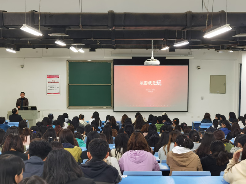 纪向东经理以“旅游就是玩”为切入点,破除以往的传统发展方式,针对旅游景区怎样经营以及经营的指标提出了自己的见解,向同学们分享了自己的一些感悟。纪经理在讲座中谈到,当今的建设应以产品好、服务好为品牌优势,以更好地满足旅游者的需求为出发点,加强旅游景区的基础设施建设。同时结合具体的景区案例,为同学们分析了景区发展的途径和方向。例如云台山根据消费者的消费心理推出年卡的优惠,这就是当代旅游中的“玩”,所谓“玩”,也就是创新,以创新促发展。