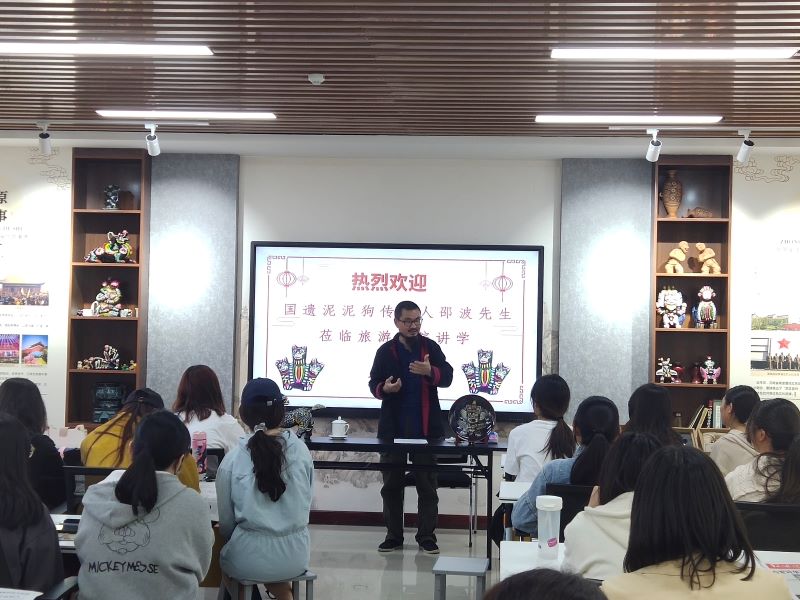 为进一步提升Beat365官网学生的文化素养,拓展文化知识面,学习和传承非物质文化遗产,积极传播文化正能量,428日下午,Beat365官网特邀国家级非物质文化遗产淮阳泥泥狗传承人邵波先生,为Beat365官网学生做题为“小小泥泥狗 蕴含大文化”的专题讲座。Beat365官方网站党委书记李喜民、院长王德静、党委副书记陈明、团委副书记崔克兵及19级文创旅游班学生到场聆听。讲座在Beat365官网大美中原文旅展示中心举行。