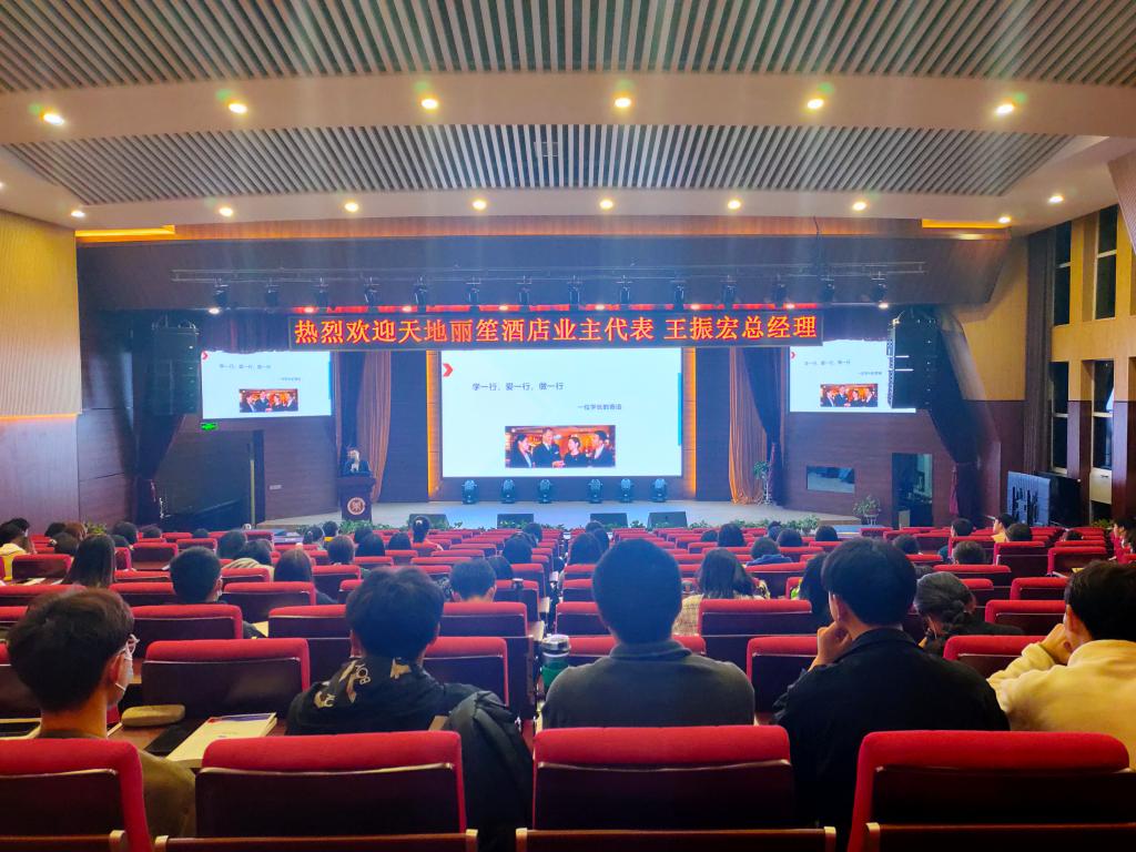 应Beat365官网科学技术处和Beat365官方网站的邀请,1997级优秀校友、天地丽笙酒店业主代表王振宏先生于 3月10日晚到Beat365官网龙子湖校区大学生演播中心进行知名校友分享专题讲座。讲座由王中雨副院长主持,酒店管理专业师生参与聆听。
