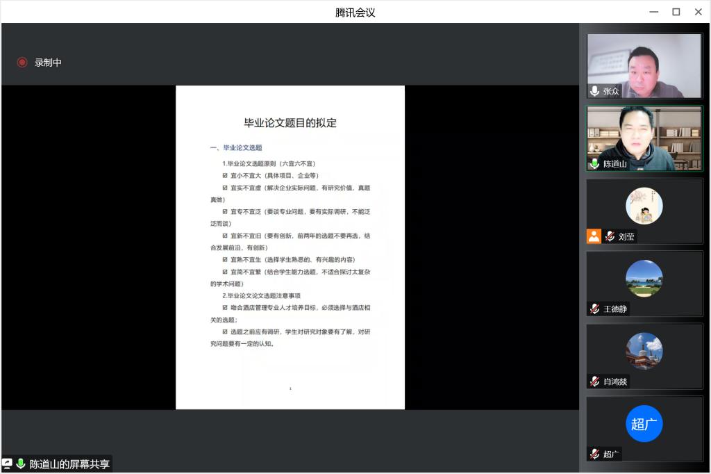 酒店管理专业开展线上23届本科毕业论文选题论证会