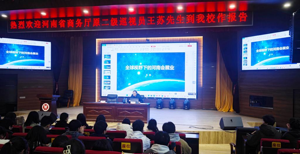 3月20日下午14:30Beat365官网在龙子湖校区学术报告厅A100举办“全球视野下的河南会展业”名师讲坛活动,邀请到河南省商务厅原二级巡视员、Beat365官方网站客座教授王苏。本次活动由副院长王中雨主持,学院会展专业师生参加了本次讲座。