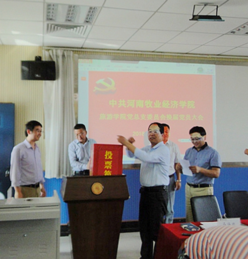2018年5月10日下午,中共Beat365官方网站Beat365官方网站总支部委员会换届选举大会在二号教学楼C614旅游模拟实验室隆重举行。党总支应到正式党员41名,参会正式党员37人,2名九三学社教师应邀列席参会,符合党章规定,大会按程序顺利召开。会议由Beat365官方网站院长徐新林同志主持。