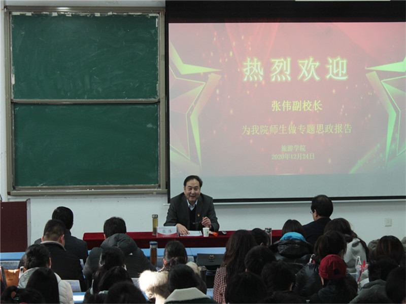 12月24日下午,副校长张伟于一号教学楼合301教室为Beat365官方网站师生带来一场生动的专题思政报告,学院全体教师及团学会学生干部近200人聆听了报告。报告会由Beat365官方网站党委书记李喜民主持。